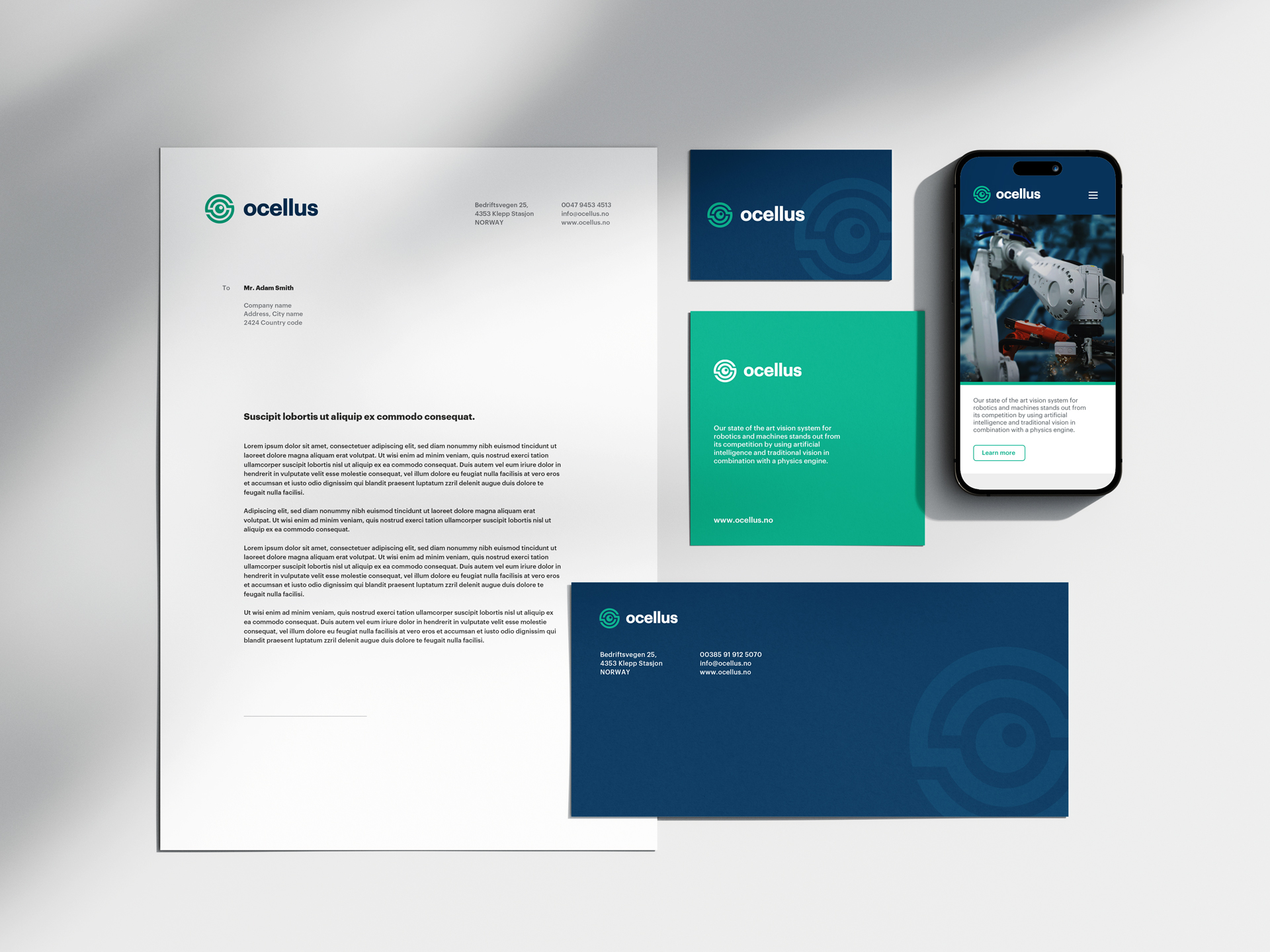 Brand identity for Ocellus, state of the art vision system for robotics and machines, that stands out from its competition by using AI and traditional vision in combination with a physics engine.