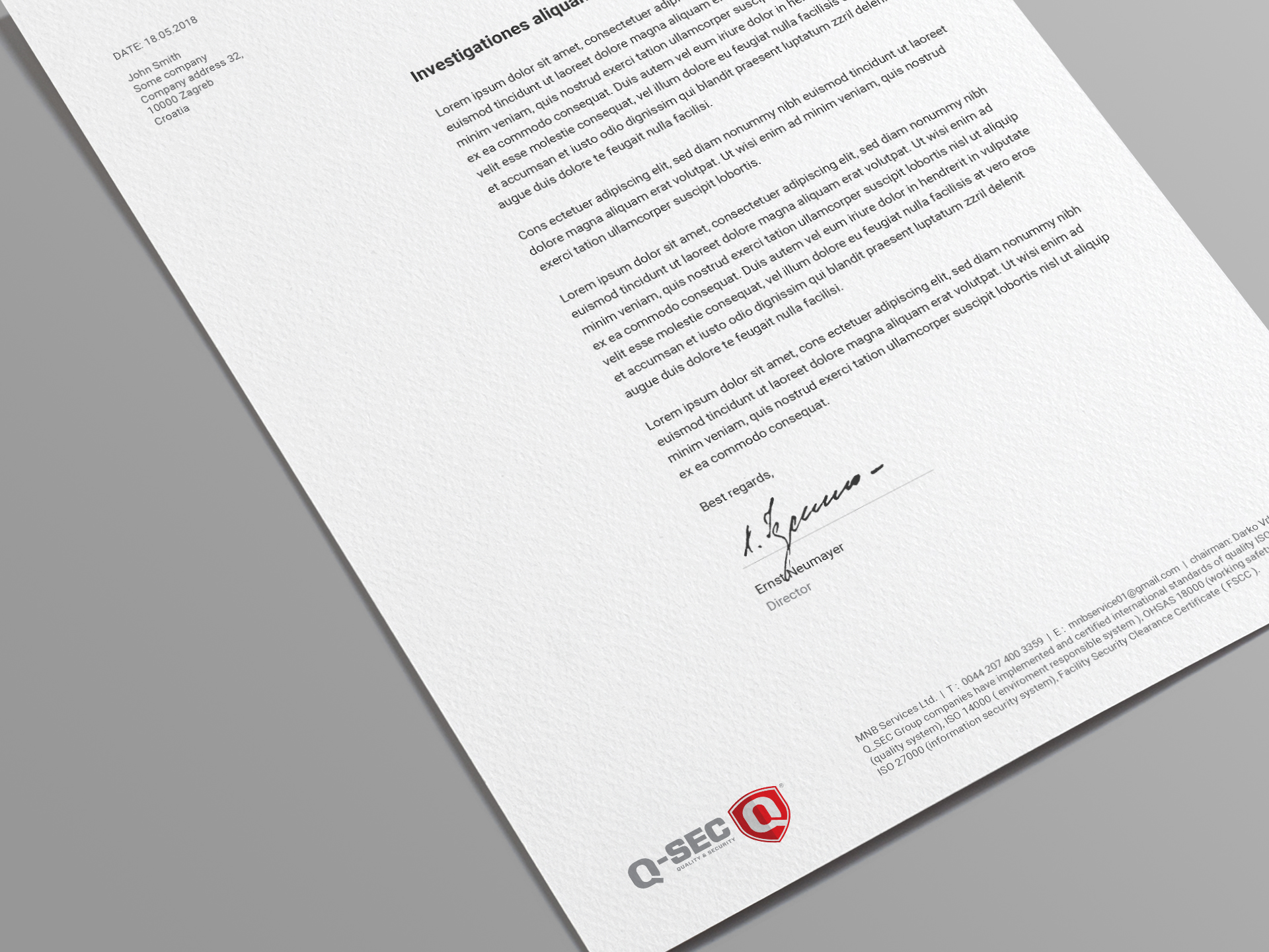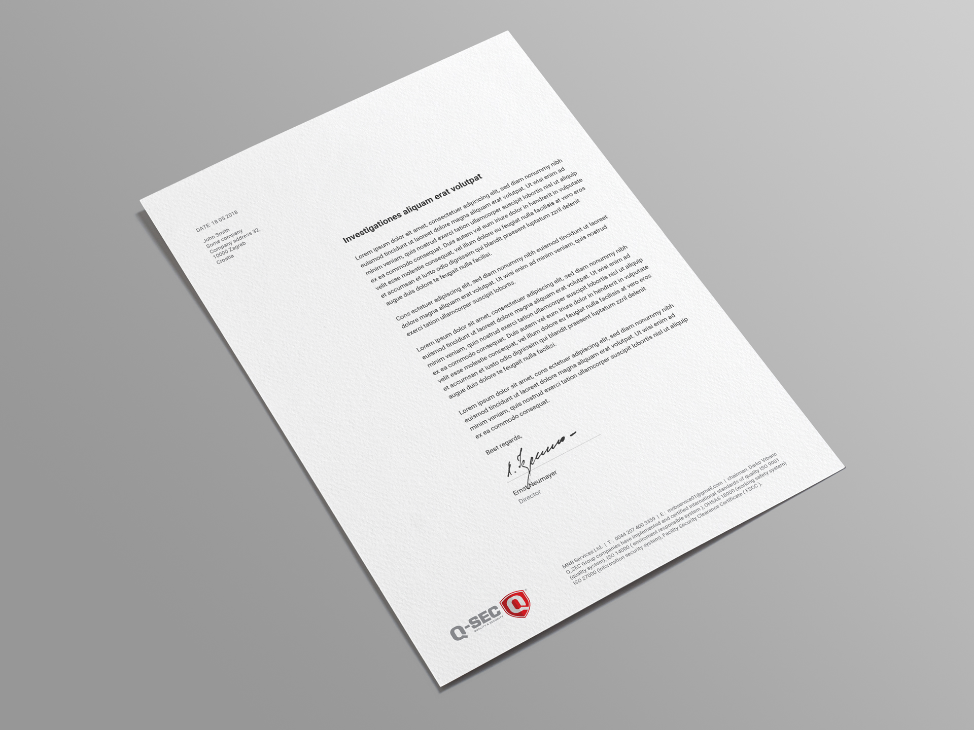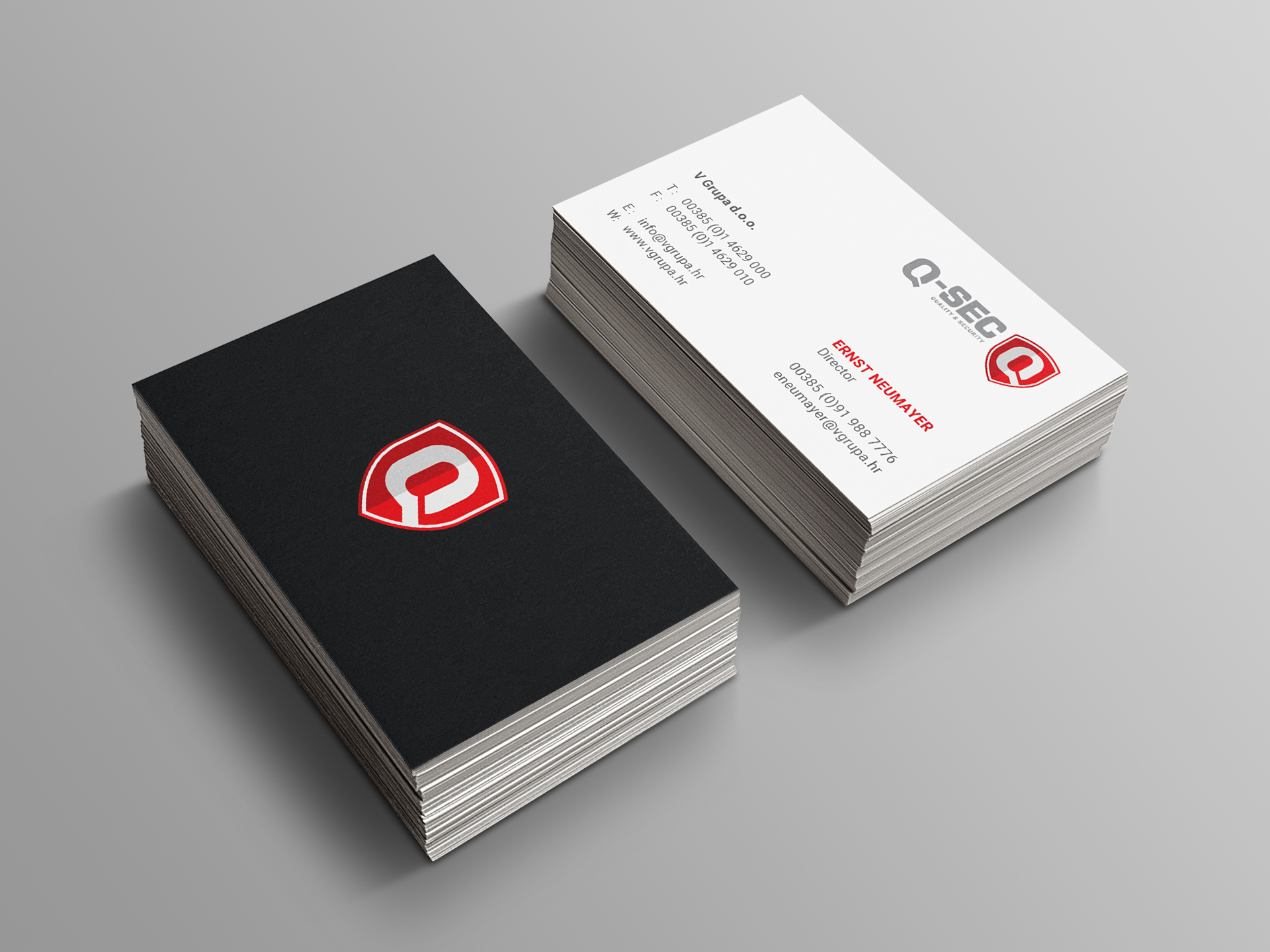 Brand design and identity for Q-Sec, a subsidiary of V-group. Q-SEC is a company specialized for work in Private security activities.